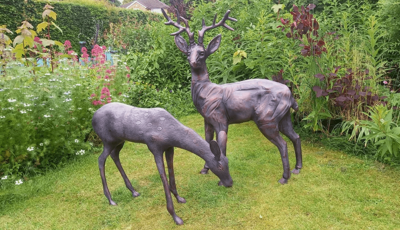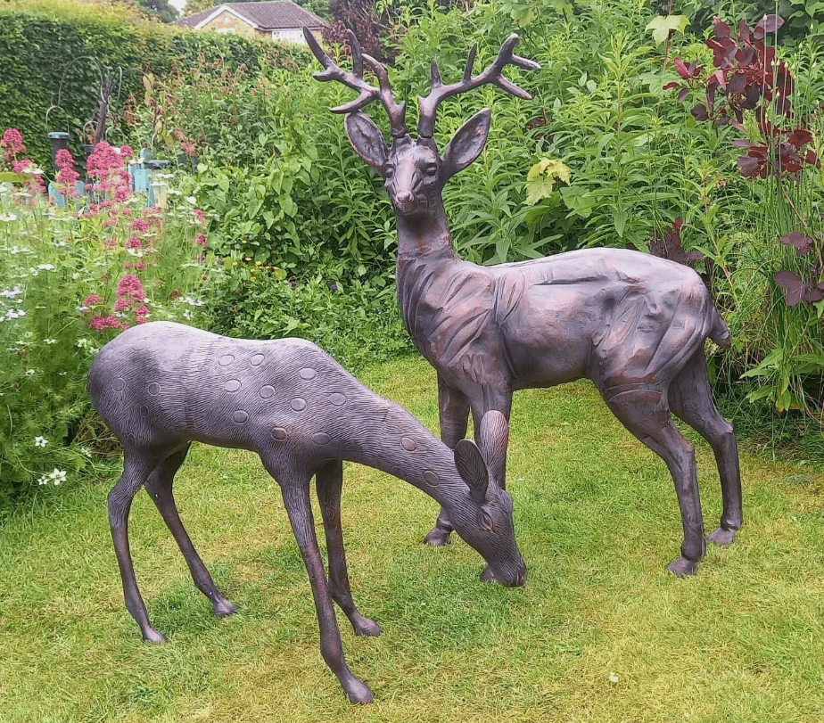 Stag and Doe Deer Set our Largest Garden Sculptures – Hand Cast in Aluminium