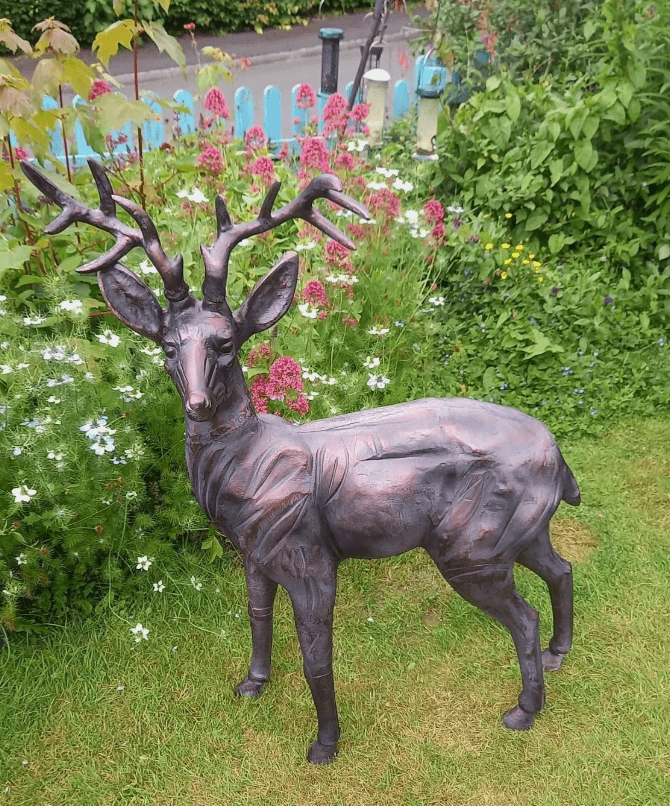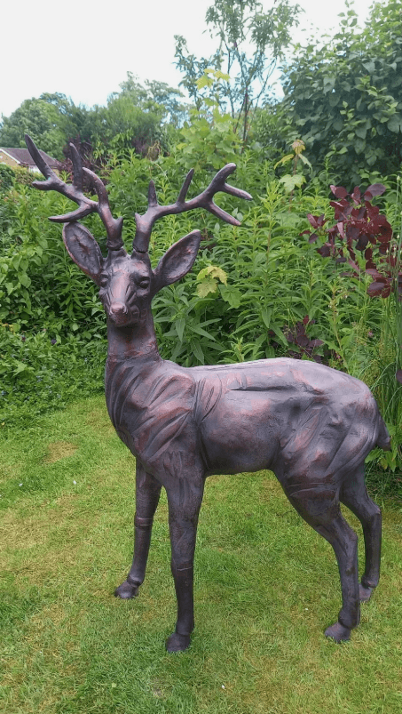This is for a pair of cast Aluminium deer sculptures – stag and doe – with an aged bronze effect finish. Our Deer Sculptures are a wonderful way to add another dimension to your garden. They fit perfectly into both traditional and contemporary styles.  They make a lovely centre piece for any garden or home – and they look amazing within all your plants.This is our brand new and largest Stag and Doe Set – made from cast Aluminium, hand finished for an aged bronzed look in our own facility in India.