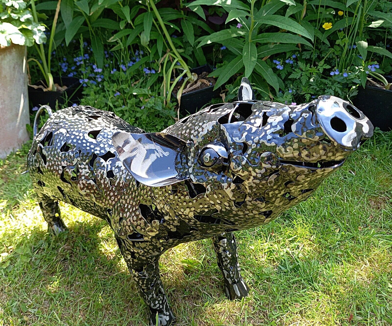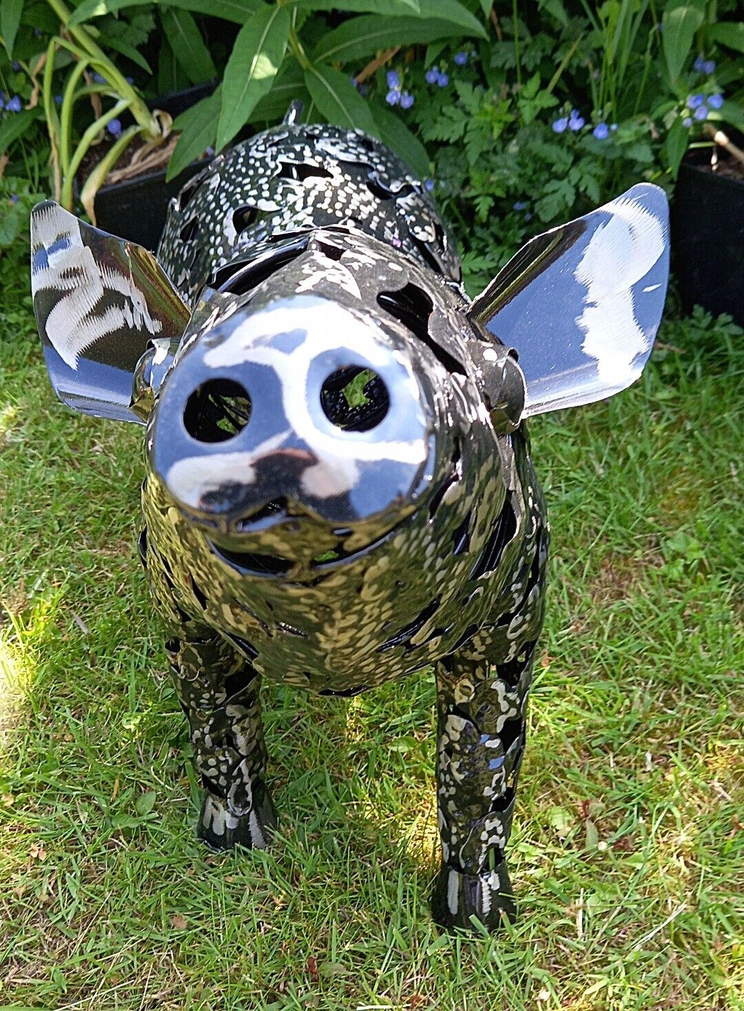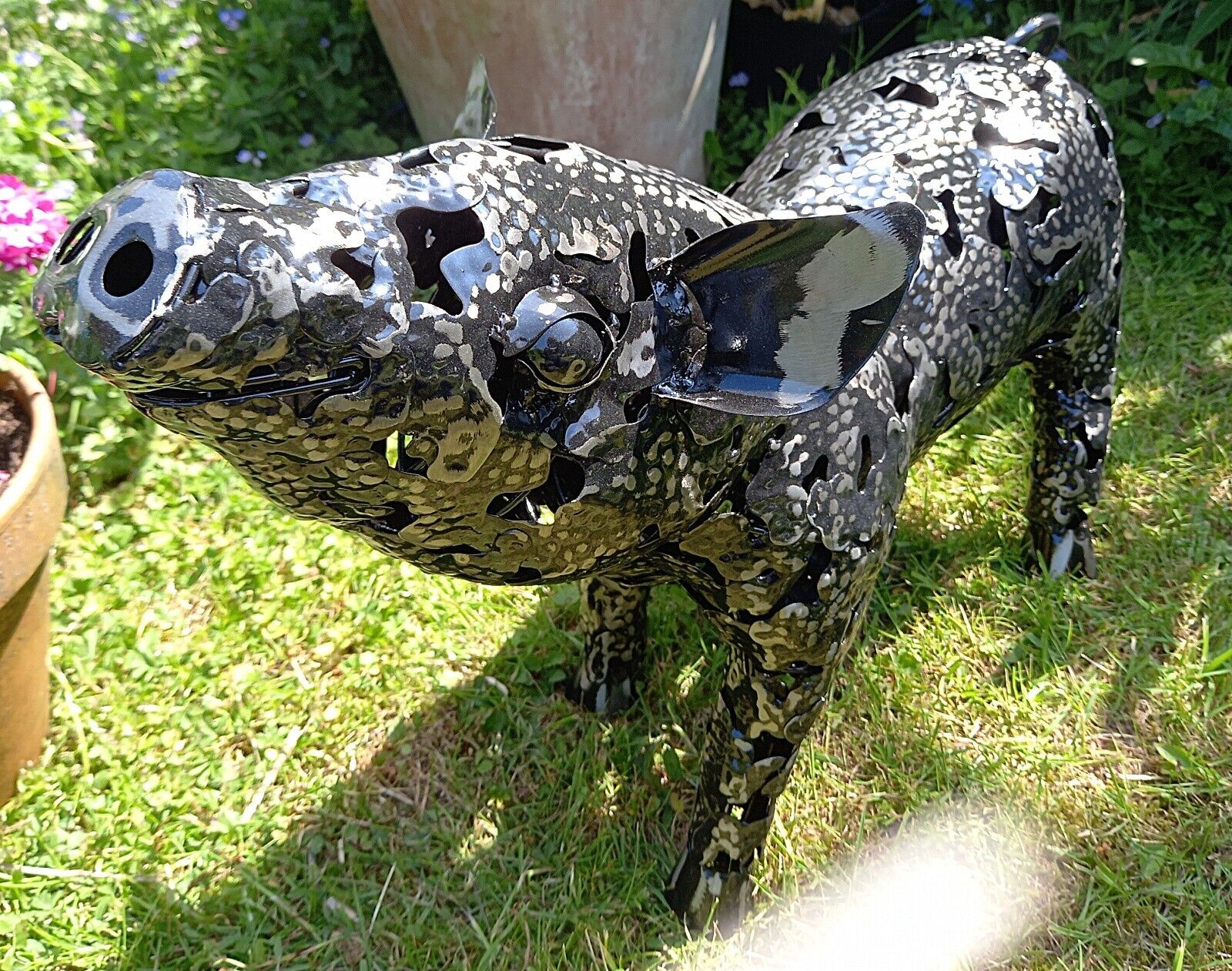 Our unique metal garden ornaments are hand-made by skilled craftsmen using traditional methods. The hardiness of their construction enables outdoor display whatever the conditions. The Piglet is an impressive garden feature. The platework construction enables you to buy these statement pieces whilst keeping their weight manageable and prices low. The metal is durable and strong, withstanding all weather conditions.