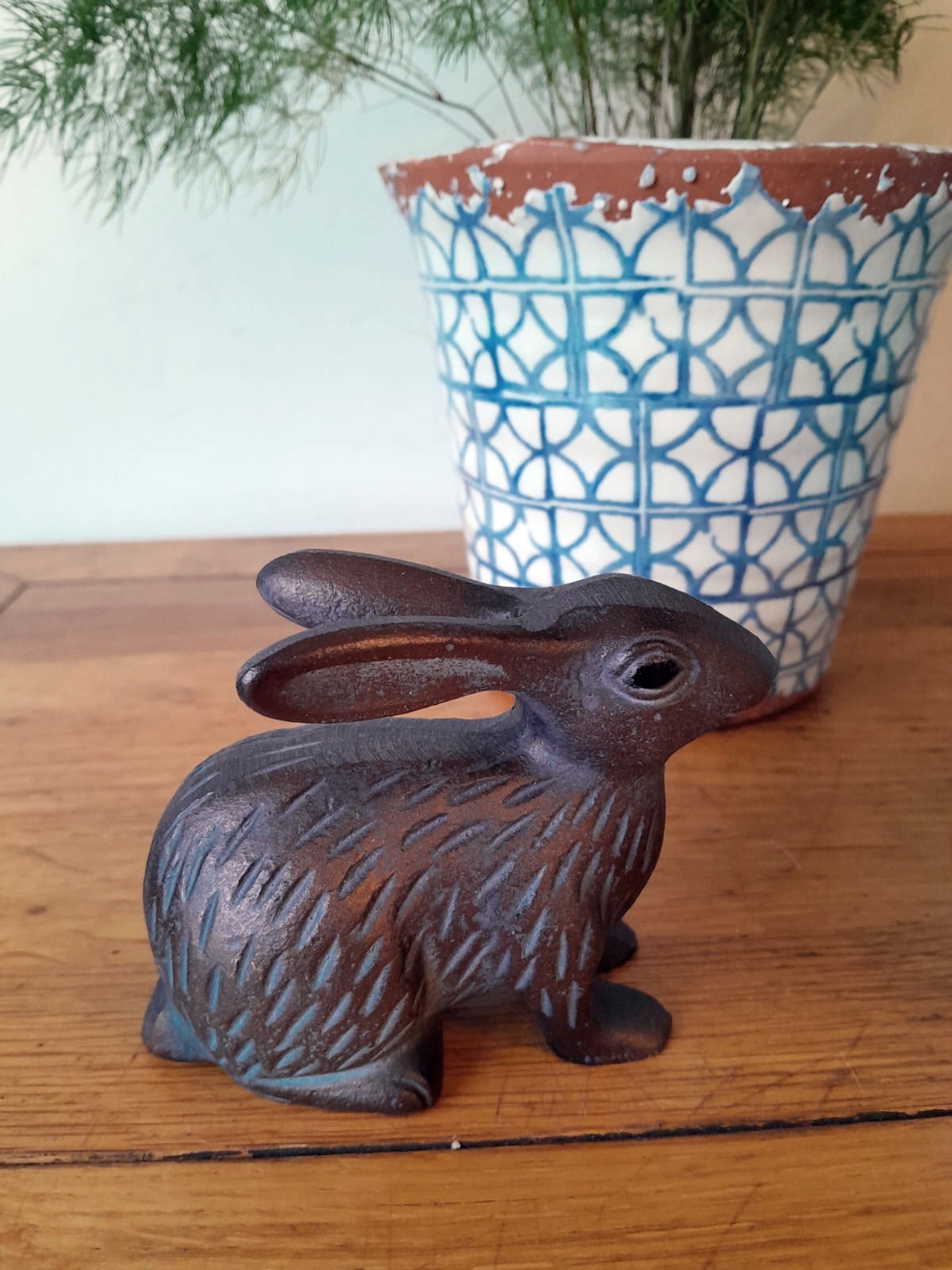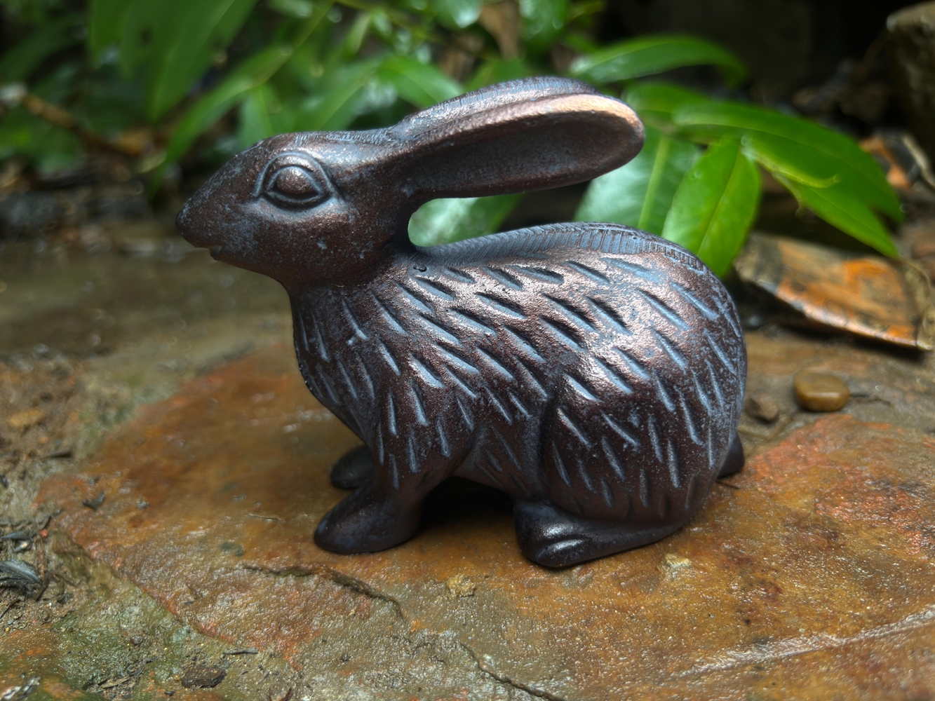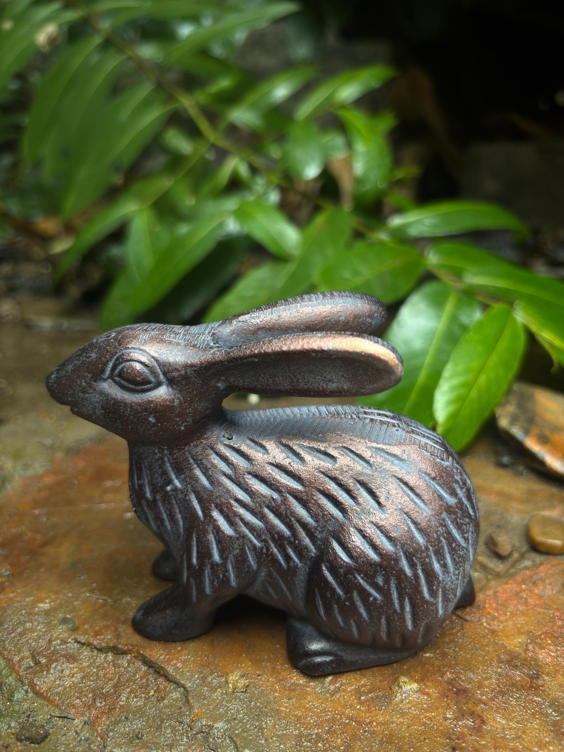 A beautiful and charming Baby Rabbit Sculpture Ornament in Bronze effect Aluminium.