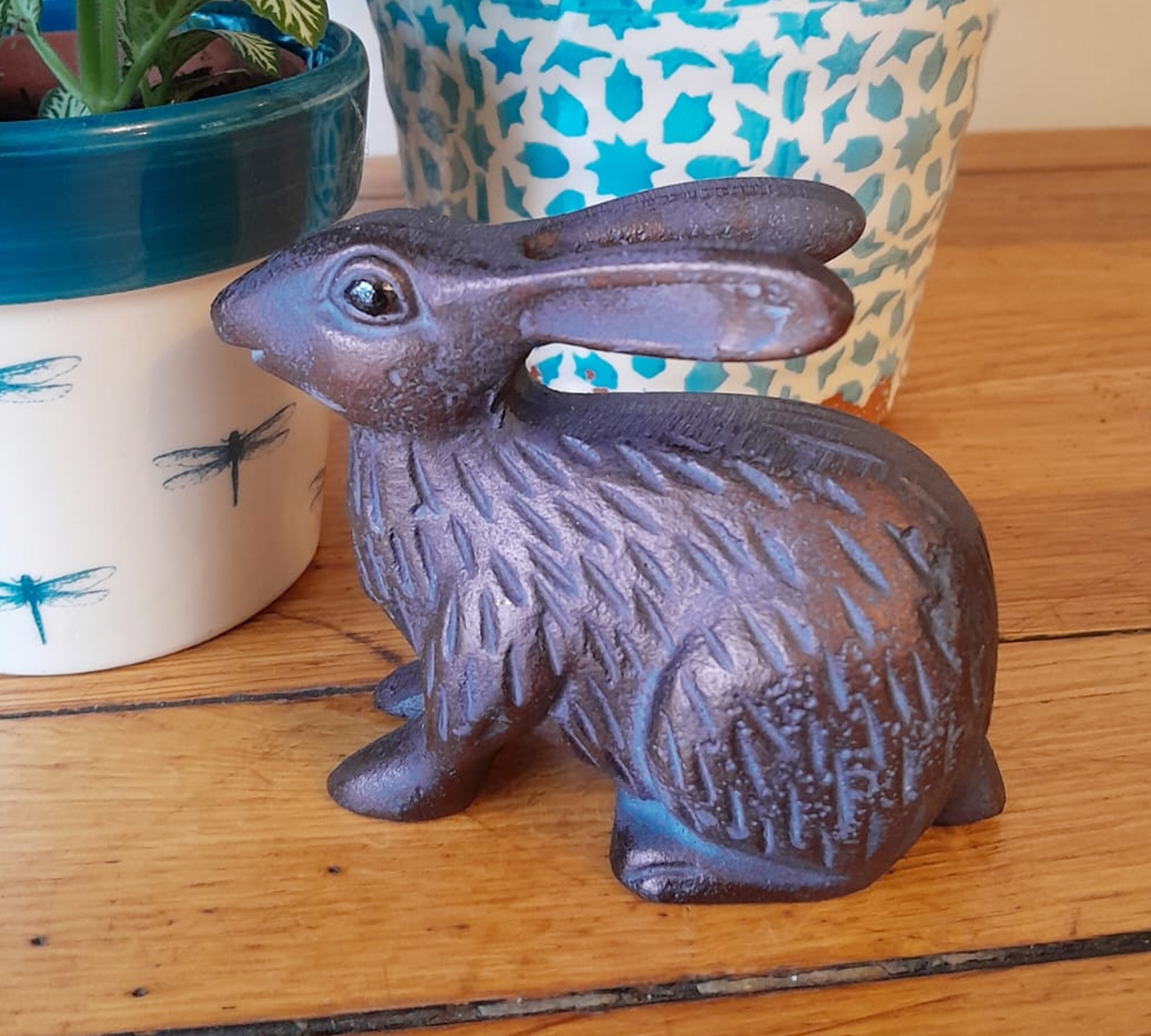 Bring charm to your home with this adorable Baby Rabbit ornament. Crafted from high grade aluminium, it feels both sturdy and lightweight. Measuring 9cm tall, 11cm wide and 6cm deep, it fits perfectly on shelves, desks and mantlepieces. The fine detailing captures the rabbit’s gentle expression and adorable features. It creates a warm and inviting atmosphere to your indoor or outdoor space. You can display it all year-round or use it as a seasonal decoration for Easter or spring. It makes the perfect gift for any occasion. It’s durable metal ensures lasting beauty without tarnish or wear.