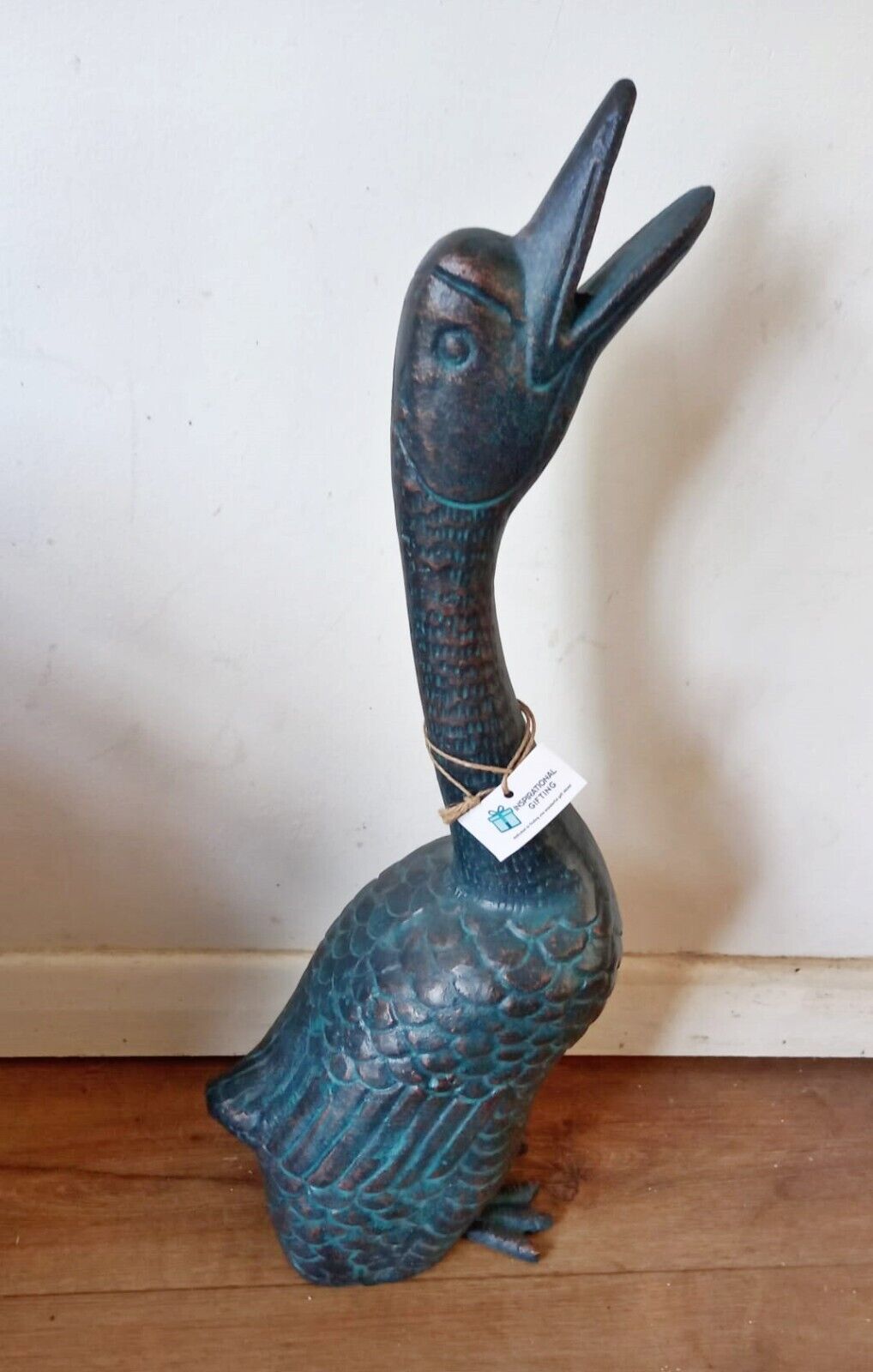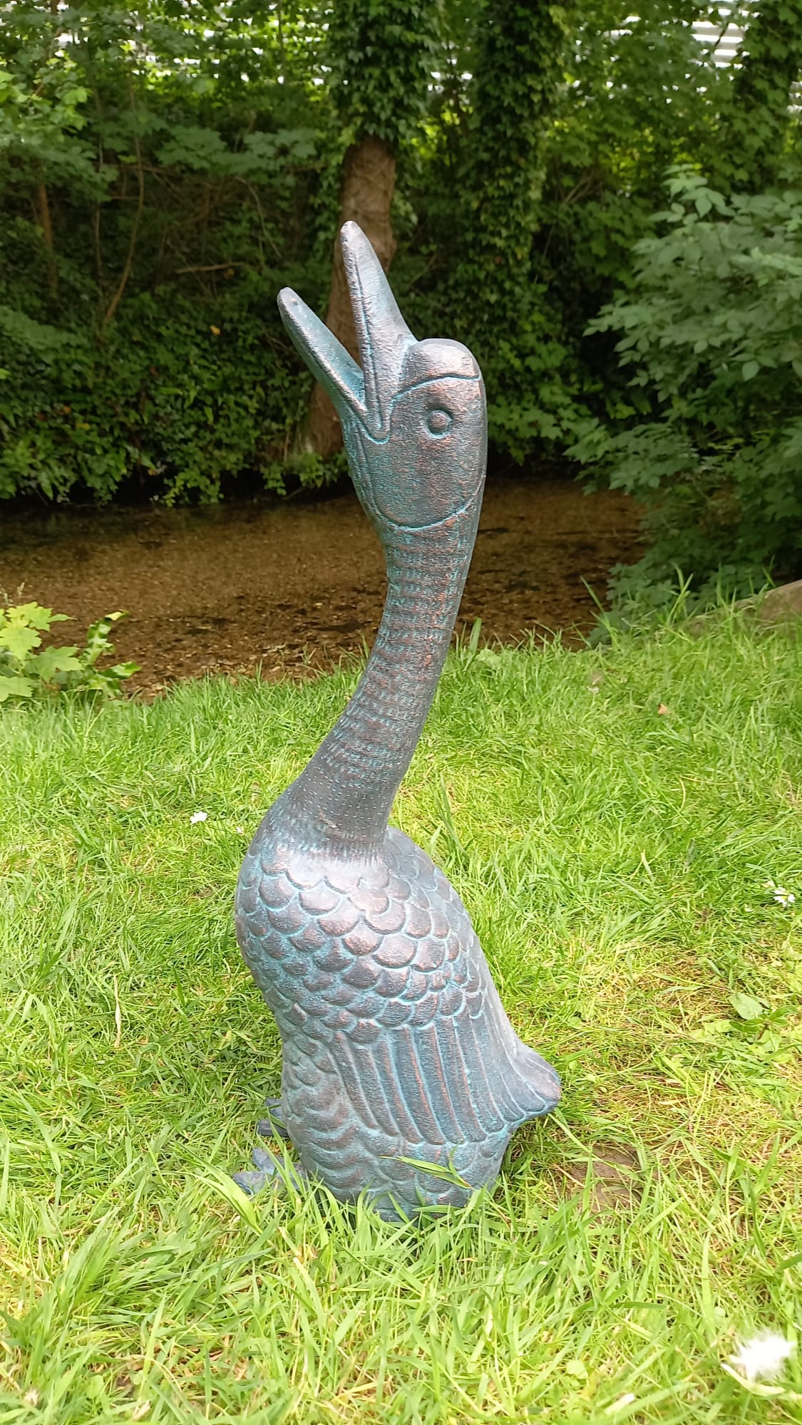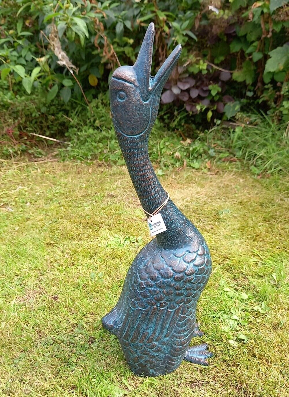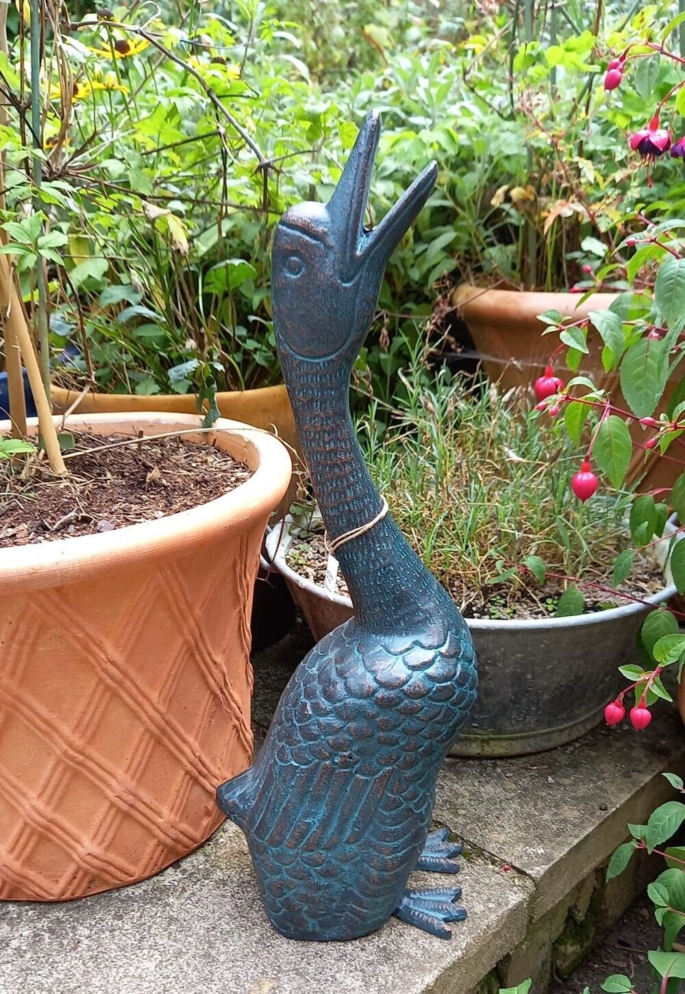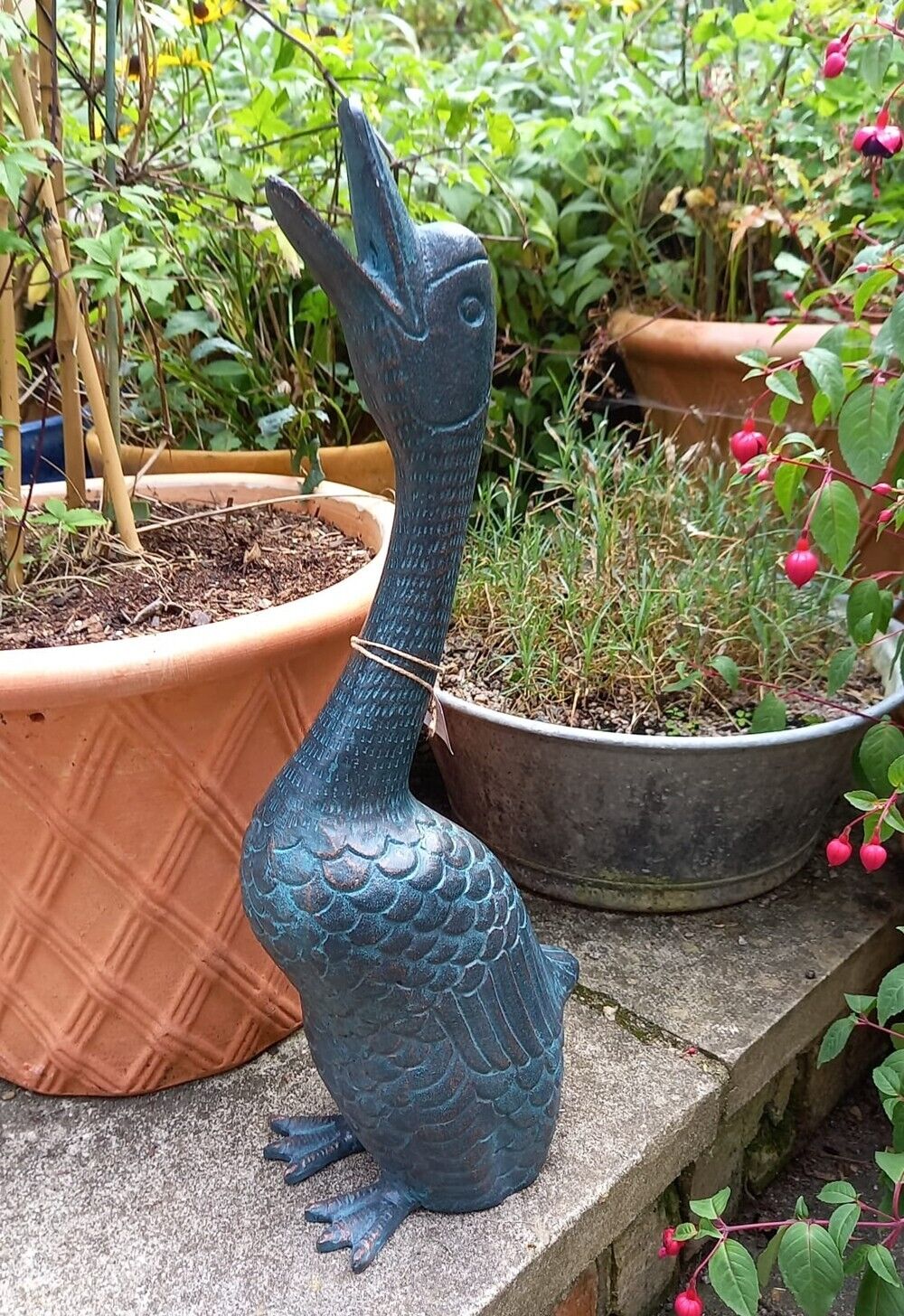 This delightful Verdigris Antique Bronze coloured metal Goose Garden Ornament has amazing detailing.