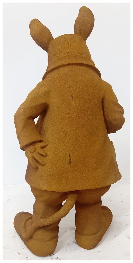This is a lovely sculpture of Mr Ratty. This sculpture uses a new and improved construction method. Made from cold cast iron, iron particles are suspended in a resin. The iron is most concentrated towards the outside of Mr Ratty giving a pure iron coating. The sculpture is then rusted to make it seem like it has been in your garden (or where ever you decide to put it) for years and that it has really settled in. This production method gives Ratty a level of detail that simply isn’t possible for pure iron casts, and better still, it does this for a fraction of the price!