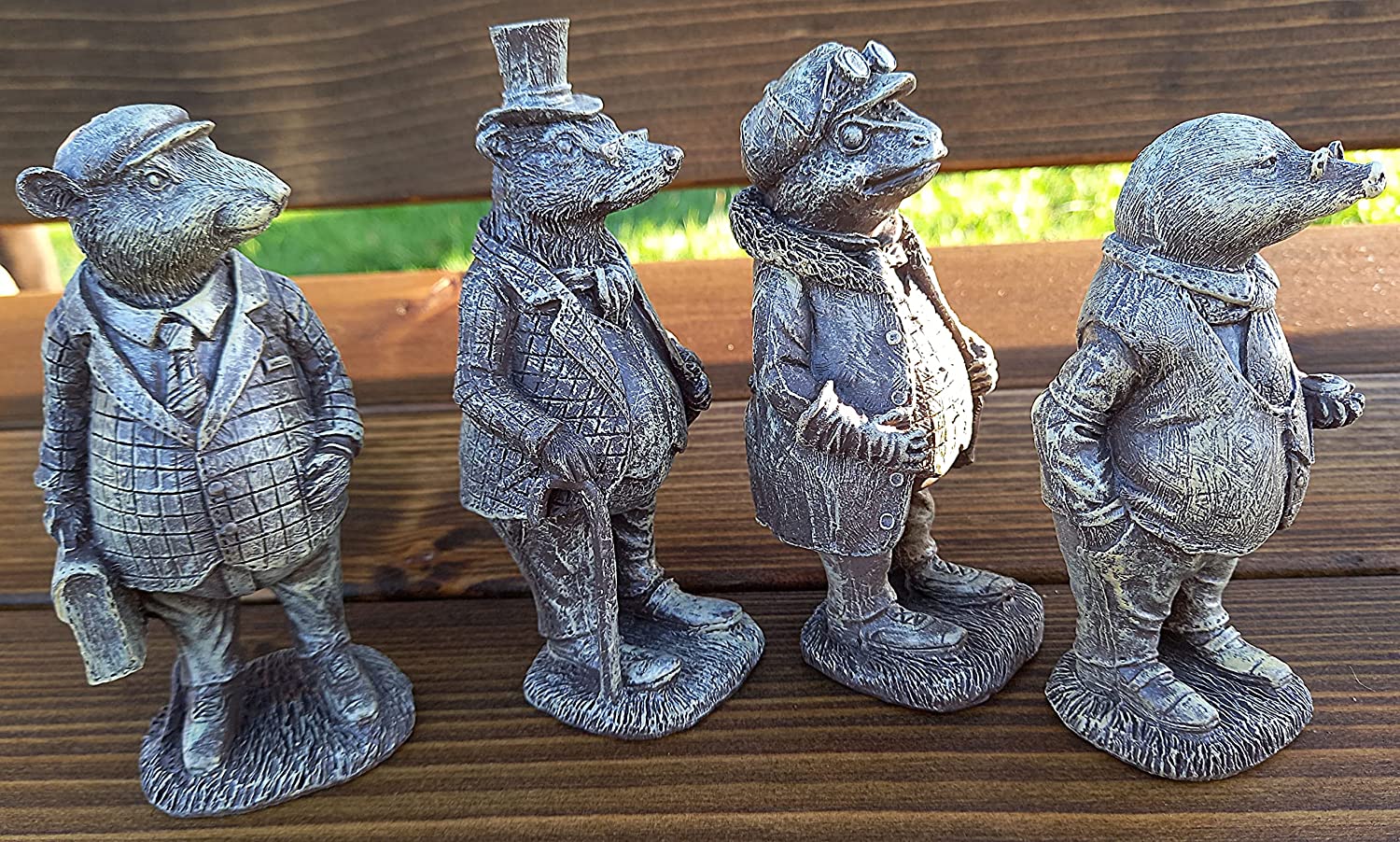 Our unique Barium Sulphate resin garden ornaments are hand-made by skilled craftsmen using traditional methods. The hardiness of their construction enables outdoor display whatever the conditions. The Miniature Characters from Wind in the Willows are an impressive feature, the resin construction enables you to buy these statement pieces while keeping their weight manageable and prices low. The Barium Sulphate resin is durable and strong, withstanding all weather conditions.