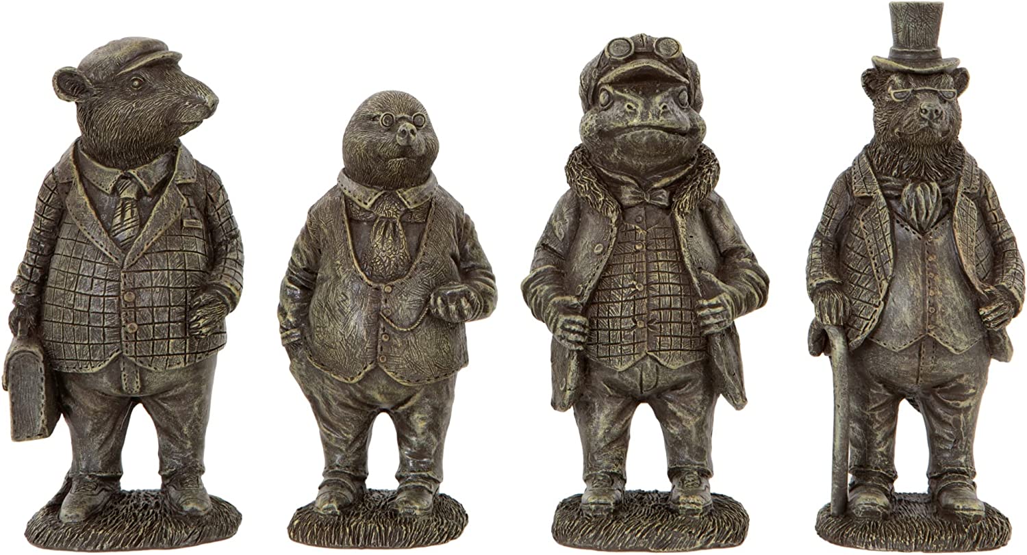 Superb set of 4 Miniature Character Ornaments from Wind in the Willows made from a solid stone resin – including Toad, Ratty, Mole and Badger. Hand finished with an aged Verde patina.