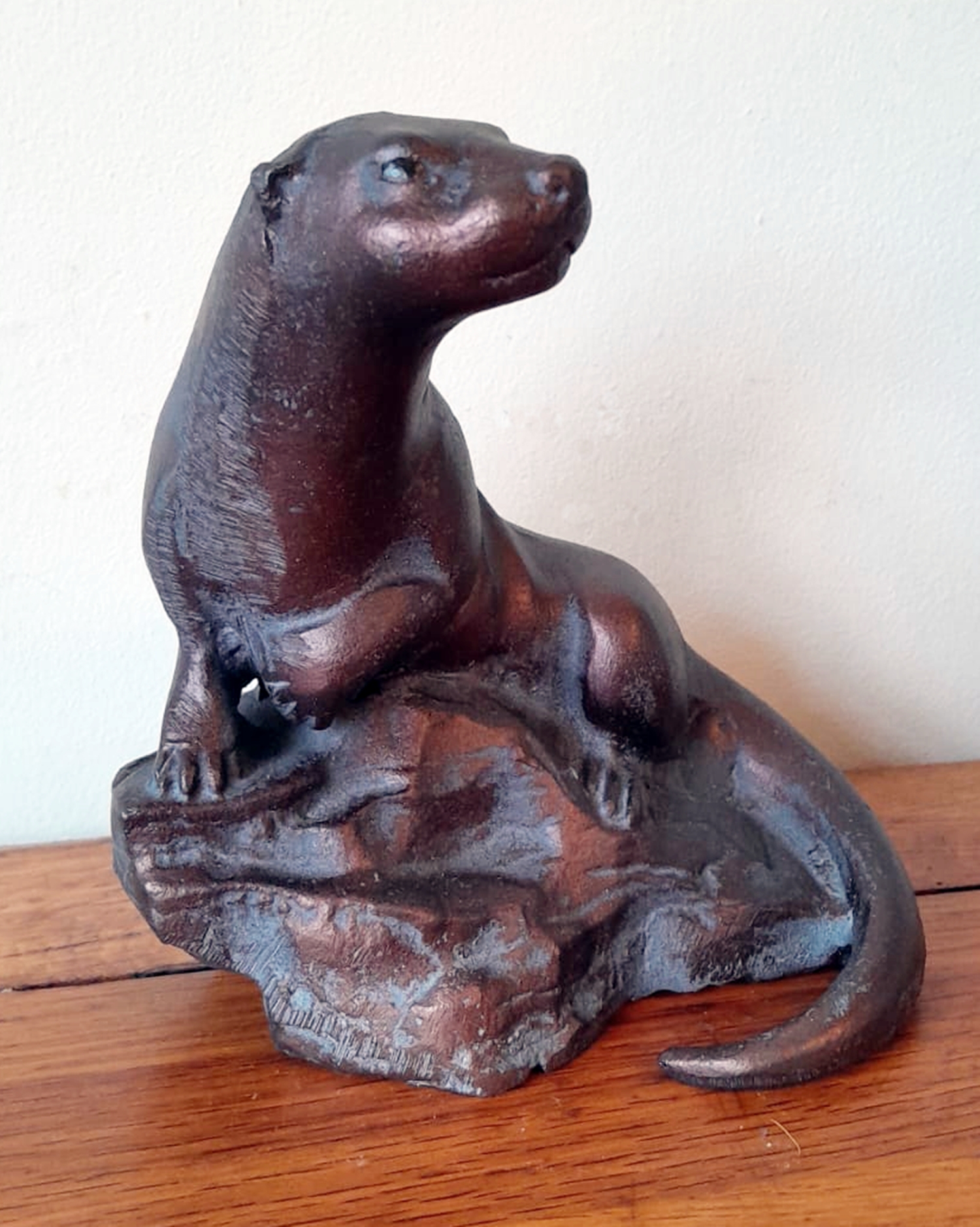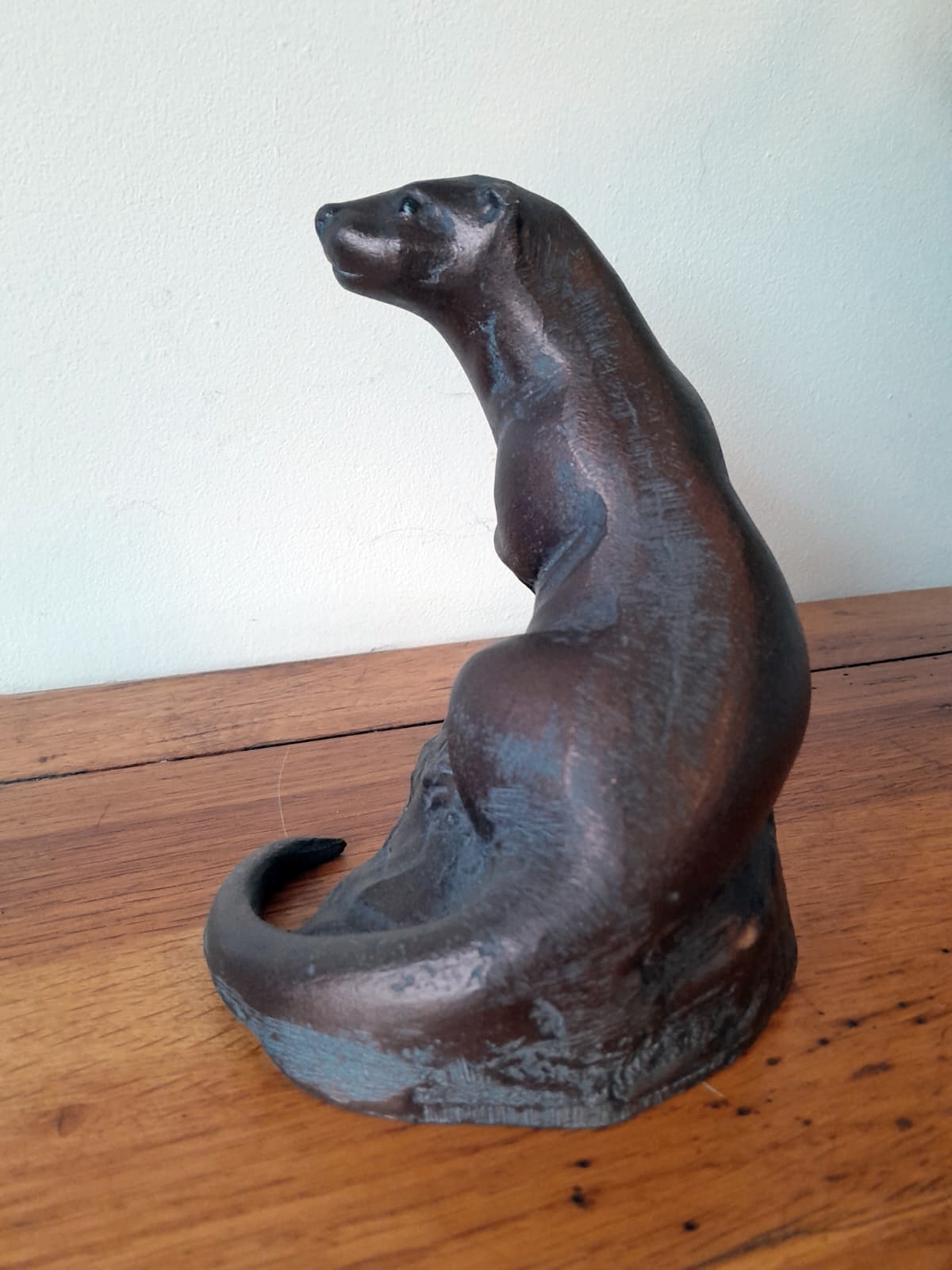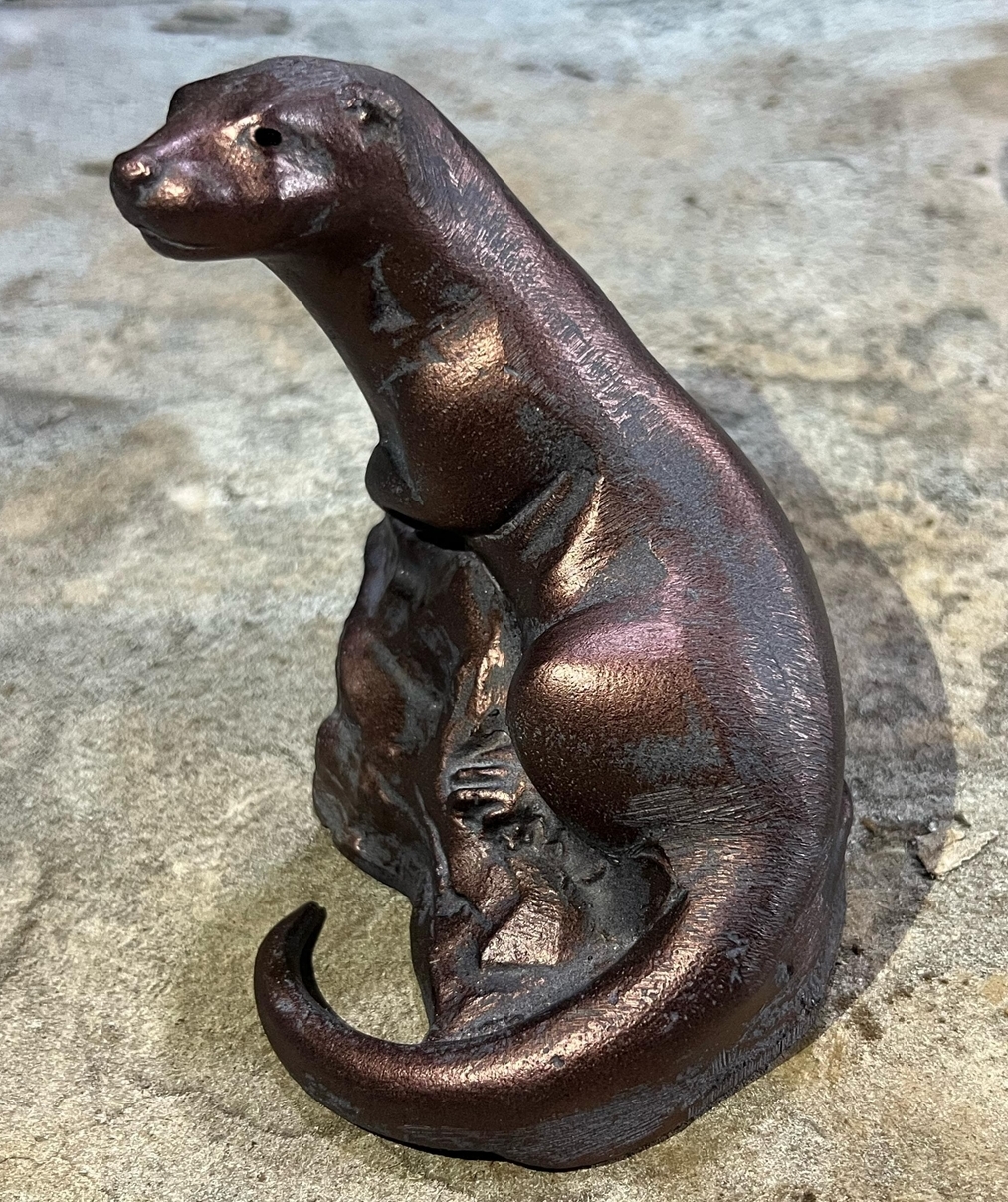 A lovely Miniature Otter Sculpture Garden Ornament in aluminium with an Aged Bronze Finish.