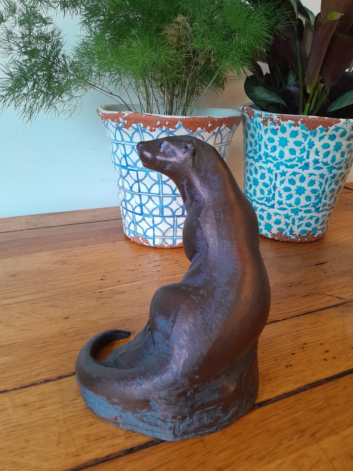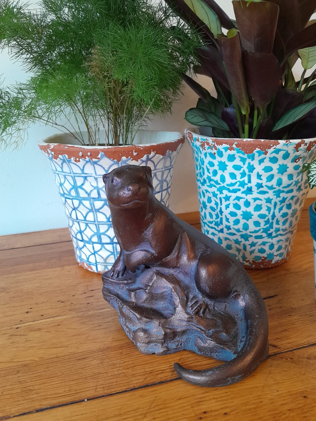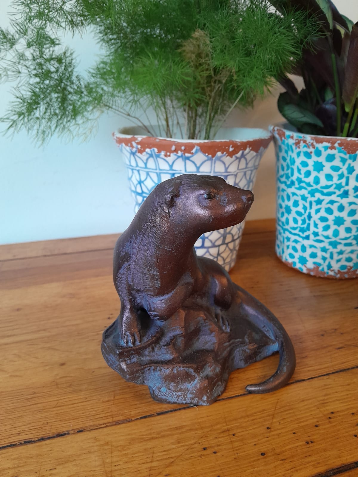 A lovely Miniature Otter Sculpture Garden Ornament in aluminium with an Aged Bronze Finish.