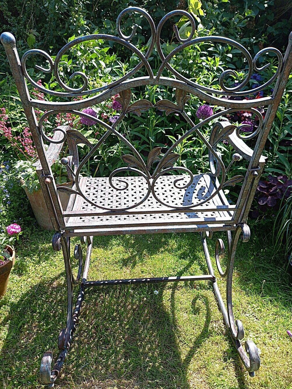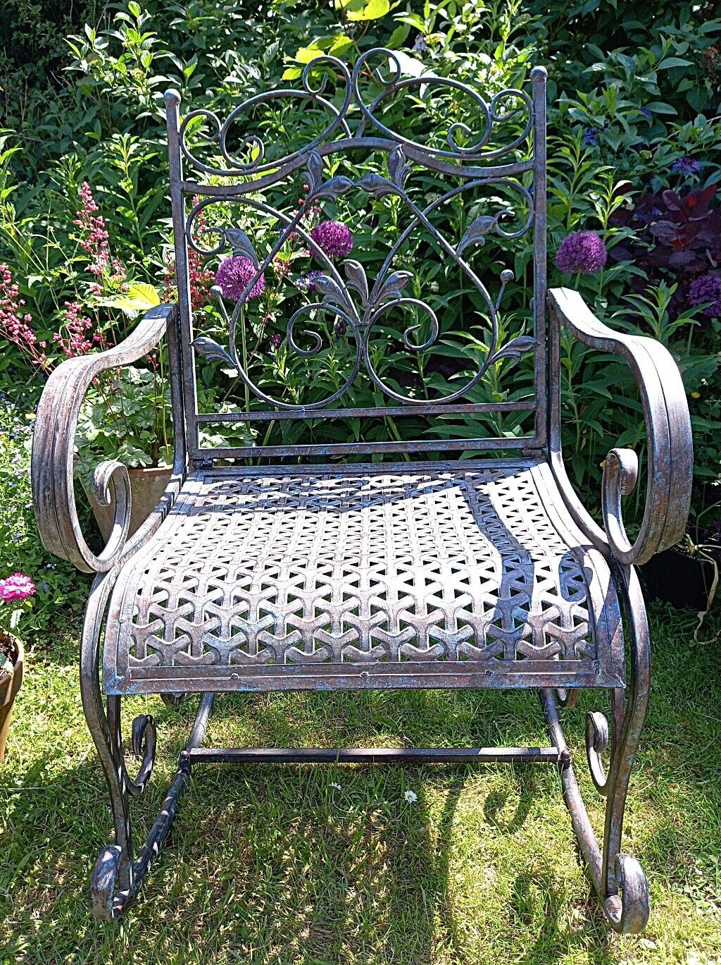 Ornate Metal Rocking Chair. 105cm tall in a Verdigris finish!