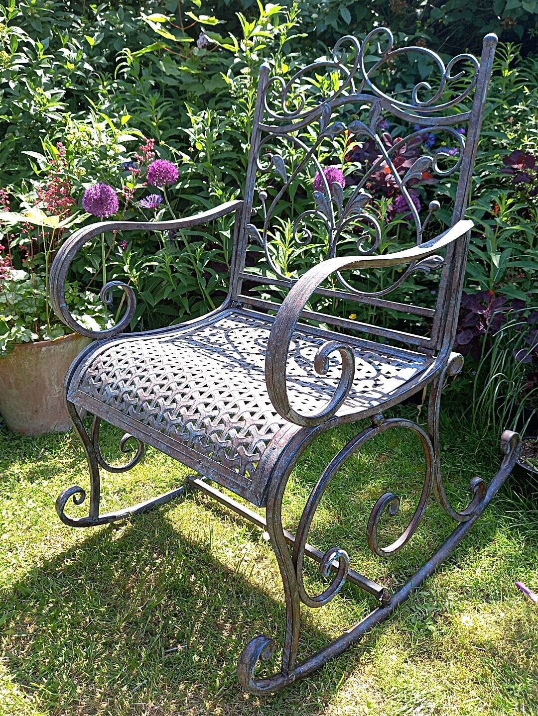 Our ornate metal rocking chair is a great gift idea for friends and family – its Verdigris finish adds a wonderful spot of colour for your home or garden!